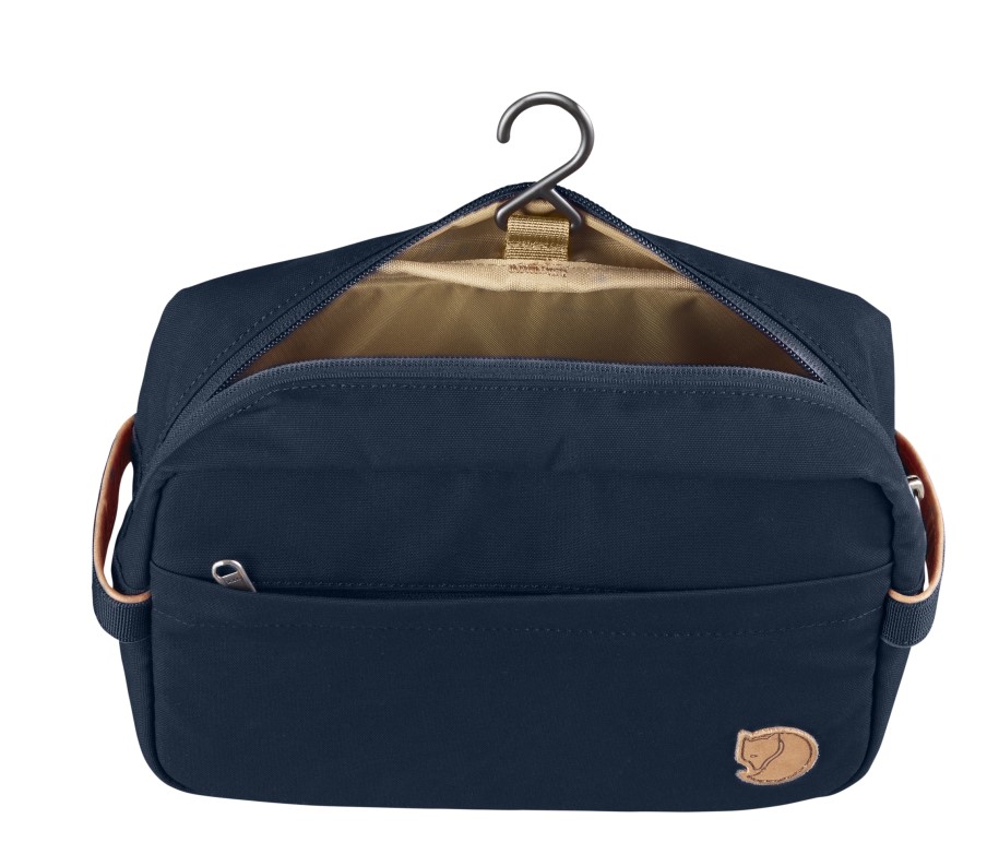 Practical travel toiletry bag in durable G-1000 HeavyDuty Eco with leather details. Large main compartment with inside pockets - several open and one with a zipper - make it easy to keep track of toiletry items. The inside is in a light polyamide that is easy to wash should it become stained or dirty. There is an additional zippered pocket on the outside. Padded on all sides to protect contents and allow the bag to stand steadily even when not fully packed. Handles on the short sides and a hook on the inside of the main compartment's zipper - practical for hanging the bag up in the bathroom. Fine craftsmanship gives a long lasting travel bag that ages with style. Perfect together with Travel Pack (F25514).